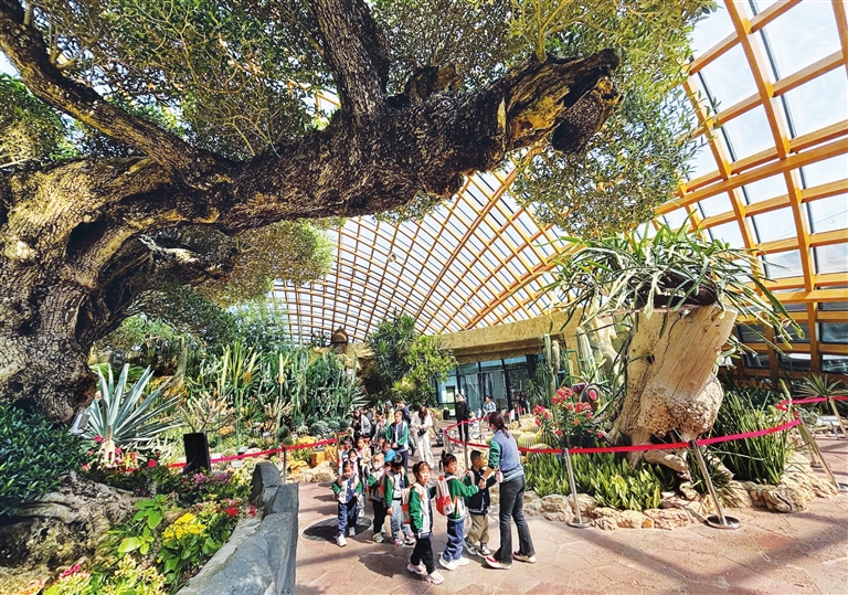 还有海棠和丁香。“只恐夜深花睡去,故烧高烛照红妆。”海棠花在微风中竞相开放,美得如诗如画。人在花下,香风阵阵,花瓣飘落如雨,妙不可言;“芭蕉不展丁香结,同向春风各自愁。”丁香盛开时幽雅芬芳,宛如从诗词中走来的丁香姑娘,温柔而迷人,令人陶醉。赏花时间:4月中下旬;观赏地点:海棠园、丁香荚蒾园。