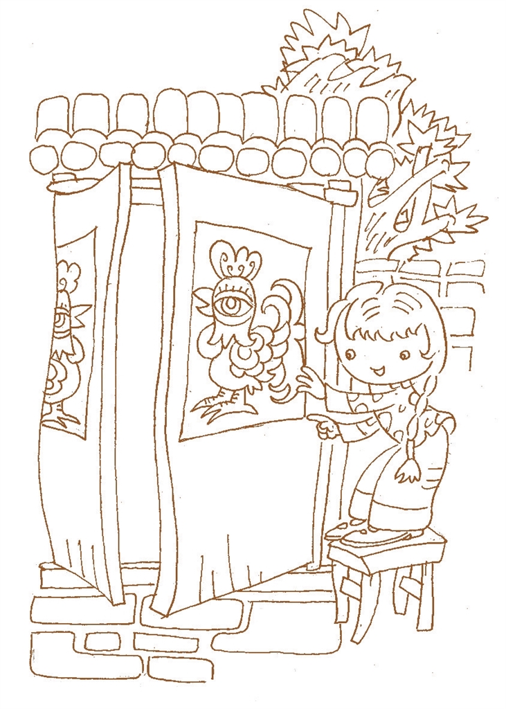 清明节时,家家户户的门上都要贴上一对剪纸红公鸡,左右门扇各一只,寓意雄鸡把门。春天万物复苏,村外的庄稼地里,蚰蜒、蝎子、壁虎、蟋蟀等虫蛇常常会闯入村民的院落。公鸡被称为百虫之敌,门口有雄鸡把门,虫害就不敢轻易进院侵扰人们的生活。因此,清明节贴公鸡辟邪防虫害的习俗应运而生。