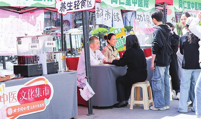 4月1日,小店区第一届城市养生文化进商圈暨中医药文化宣传周活动——“醒春市集”在茂业天地二期南广场举办,向市民宣传普及中医药文化常识,通过养生文化赋能商圈消费升级,促进“健康+消费”。 王韵菲 摄