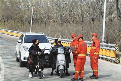 清明节前后,杨家峪综合应急中队的队员们在山河村段对进山车辆和人员进行防火检查,保障森林资源和群众生命安全。 牛利敏 摄