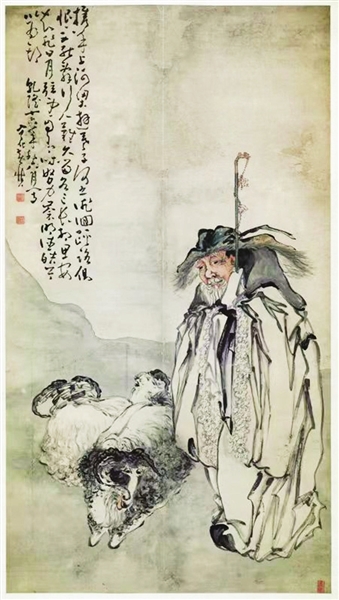 在技法融合方面,黄慎在创作《苏武牧羊图》时,运用狂草笔法的灵动与自由,将苏武的形象和动态表现得淋漓尽致。同时,他还巧妙地运用了干湿、浓淡、虚实等技法,使得画面既有力量感又不失细腻与柔美。这种技法融合不仅展现了黄慎深厚的艺术功底,也为中国传统绘画艺术注入了新的活力。