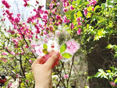 类似这样的“落花手作”,受到不少年轻人的喜爱。大家将凋零的花瓣与各种奇思妙想巧妙融合,在小物件上定格季节流转之美,让春天记忆长久保存。