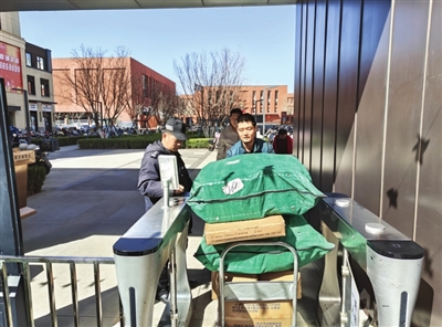 派送时,有人手上的货多,需要来回跑几趟。物业准备了手推车、购物车,随时借用,一趟就能送完。另外,只要首次登记后,门卫会将信息录入,下次再来,快递员或外卖员直接刷脸即可,非常快捷。