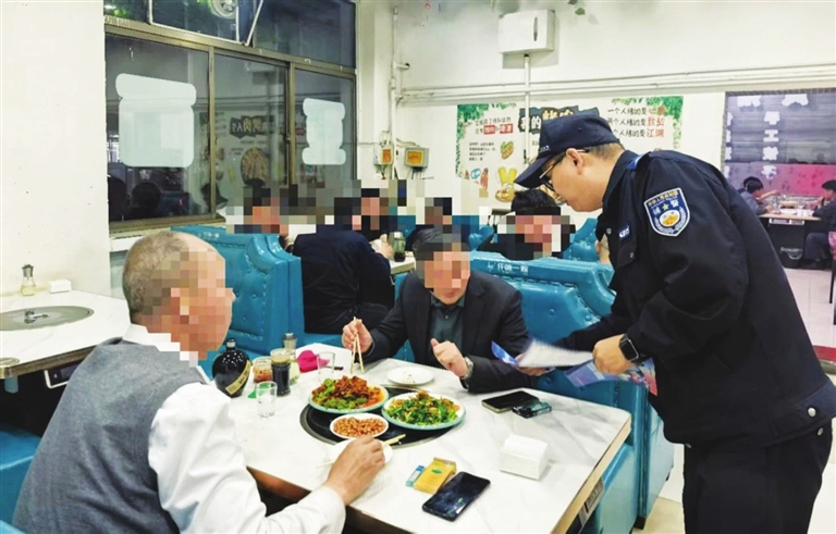 活动中,民警、辅警走进饭店,向店员和顾客讲解反诈相关知识,结合身边发生的真实诈骗案例,用通俗易懂的语言向大家作深入浅出的讲解,详细地介绍了诈骗分子的惯用手法、作案套路、套话以及防范应对措施等,提醒大家不轻信来历不明的电话、短信,不点击陌生链接,坚决做到“不听不信不转账不透露”,更不要有“天上掉馅饼”的侥幸心理。同时,民警、辅警帮助群众下载注册“国家反诈中心”App,筑起防诈“安全墙”。