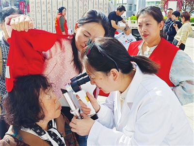 4月8日,亲贤社区与辖区多家共建单位联合开展银龄关爱行动,现场为辖区老年人提供免费理发服务,健康咨询区内,眼科医生使用专业设备为老人们进行视力筛查,针对老年人使用智能手机困难,工作人员协助老人完成养老待遇资格认证,为老人送上春日暖意。 周利芳 摄