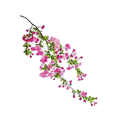 忽一日晨起,发现黑褐色的枝干上,爆出许多嫩黄色的小芽儿,星星点点,若隐若现,极力昭示着春天的来临。好像只是一眨眼的工夫,小芽儿变戏法似的团成了一个淡绿色的小球儿。没几天,小球儿欣欣然张开了,居然长成了围在一起的十几片小绿叶子,柔嫩得不忍触碰。而这些叶子中间,是一点小小的粉红。继而,小小的粉红幻化为一簇花蕾,渐渐长大,成了一串串粉嘟嘟的花骨朵。只要有叶子的地方,就有花骨朵,俏丽的花骨朵在一团绿叶的簇拥下,含羞地探着头。