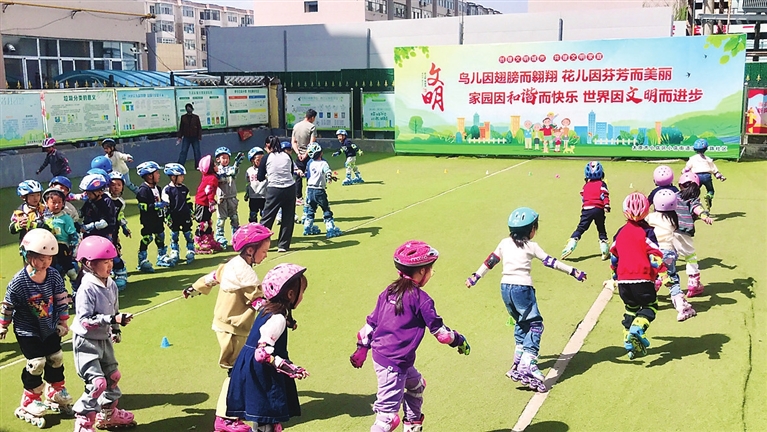 当天,20余名头戴护具、脚踩轮滑鞋的幼儿园萌娃,在专业教练指导下,举行“小脚丫踏出大勇气”特色活动。活动现场,教练团队采用眼睛看、耳朵听、鼻子闻等“五感体验法”开展安全教育,将护具穿戴要领编成“学小骑士披铠甲”等趣味口诀。