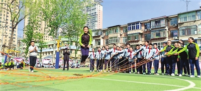晋阜小学跳绳队是新疆校园体育的佼佼者,队员们以精湛的“花样跳绳”闻名。活动现场,晋阜小学的学生们展示了“车轮跳”“交互绳”等高难度动作,绳影翻飞间尽显青春活力。桃南小学跳绳队则以“速度与节奏”见长,队员们默契配合,完成了“集体套路”“绳舞”等团体项目,现场掌声雷动。两校教练围绕“跳绳教学创新”展开深入研讨,晋阜小学教练分享了“将民族舞蹈融入跳绳编排”的经验,桃南小学教练介绍了“紧跟时代步伐,创新绳舞元素”的实践。双方约定,未来将共享教学视频资源,并联合开发适合两地学生的跳绳校本课程。晋阜小学教师表示:“孩子们在交流中学会了用不同视角理解‘中华民族一家亲’。”