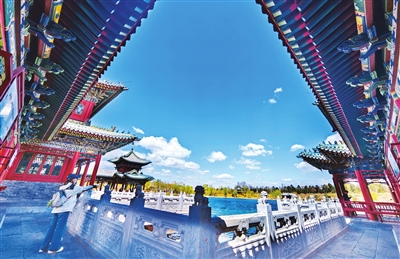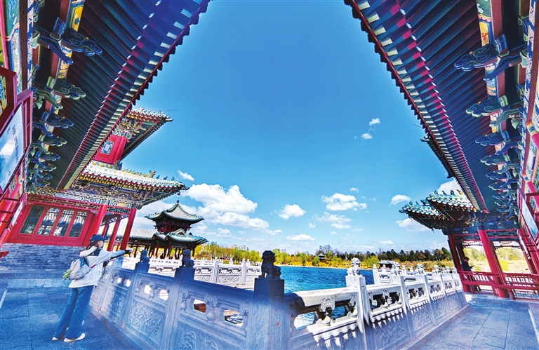 4月13日上午,双塔公园春色如画,虽是大风天气,但市民兴致不减,游园赏景。 牛利敏 摄