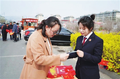 4月8日,晋源区检察院联合区司法局,在五府营社区集市开展反有组织犯罪法宣传活动。 刘友旺 摄