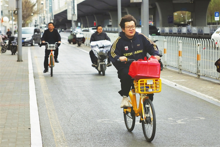 4月13日,太原市持续大风降温。图为市民重新穿上冬装出行。 张澍宏 摄