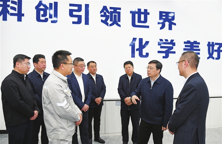 省委常委、市委书记韦韬在中化学赛鼎科创产业发展有限公司调研企业生产经营情况。 梁琛 摄