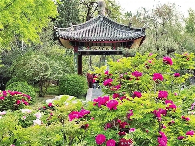 在太原说到赏花,总离不开太原植物园。四五月间,园内占地面积9400余平方米的牡丹芍药园最为引人关注。工作人员介绍,这里汇集了国内外牡丹品种150多种,涵盖了九大色系、十大花型,包括中原牡丹和西北牡丹两大类,中原牡丹有名品姚黄、赵粉、豆绿、凤丹、卷叶红、朱砂垒、鲁荷红等;西北牡丹主要是紫斑牡丹,这种牡丹相对原始,不娇柔、不媚气,树体高大、茎干粗犷,呈开张型生长,自由奔放,更抗寒冷。其中一株尤为瞩目,是几年前从甘肃中川镇引进的,已有百年历史,共有9根主枝,高达2.7米、冠幅3.8米,是传统老品种“醉杨妃”,开花时花大色艳、花香味浓,着花数可达150朵以上。