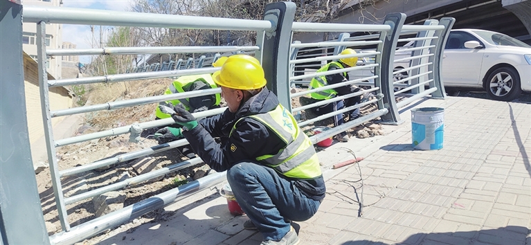 由于长时间运行,东中环路辰阳西条沿线栏杆出现不同程度的缺失、油漆脱落、锈蚀等情况,影响护栏的安全性和美观性。对此,市市政建管中心桥梁管理所制订维修方案,决定对护栏进行更换和涂刷。施工过程中,工作人员严格按照施工工艺要求,对松动及缺失的栏杆通过切割、固定、焊接等完成更换补装;对锈蚀栏杆经过清理表面灰尘、打磨除锈、粉刷底漆及面漆等工序后再刷漆,为护栏更换“新装”。