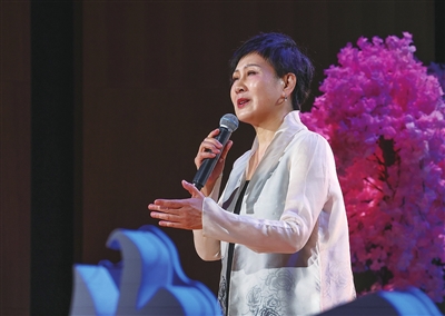 4月23日晚,“世界读书日朗诵会——和你一起读长江”在北京国家图书馆艺术中心举行。图为张凯丽在朗诵《卜算子·我住长江头》。 新华社 发
