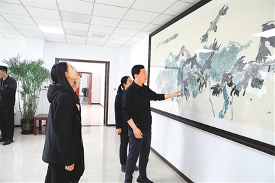 《群英会》(400CM×170CM)是赵梅生于2014年清明节为纪念太原解放65周年专题创作的作品,也是其“红色印记书画展”的代表性展品。画作中,九只雄鹰展翅翱翔,盘旋于苍松翠柏之间,象征着革命烈士英勇无畏,革命精神万古长青。人们在画作前驻足凝视,看到的不仅是水墨丹青的魅力,更能感受到一位优秀共产党员对革命先烈的深切缅怀和无限敬仰之情。