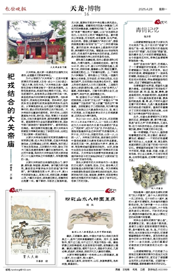 身处太原闹市的大关帝庙作为一处著名的文化遗产,在建筑、政治、文化、信俗等人文层面彰显出独特的魅力和价值。作为明清地方官衙春秋祭典和百姓奉祀活动的场所,同太原府城内的文庙、唱经楼、崇善寺、纯阳宫等古建形成完整的历史风貌区,留住了城市记忆,传承了历史文脉。
