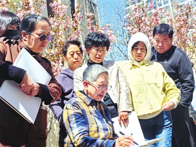 4月21日,阳光明媚,万科金域蓝湾二期小区里的樱花灿烂绽放,洋溢着浓郁的春天气息。李峰正带领着学员们手拿画板,描绘小区春景。一棵樱花树下,她手把手地教学员勾勒花朵形态,一边示范,一边耐心讲解:“注意花瓣的形状和层次,用笔要轻柔,才能表现出花朵的娇艳。”学员们专注地聆听着,认真领悟,一笔一画地勾画,这样的场景在近5年间不时上演。