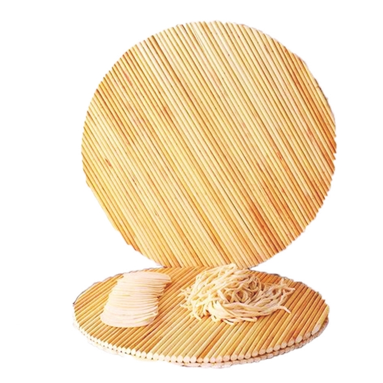 屉箅和拍子都是圆形的。妇女们切圆的方法也很巧妙:在屉箅和拍子中间用大针扎一支箭箭,那个大针所在点就是圆心。箭箭另一头按照大小需要确定半径,多余的剪掉,然后绕着半径外端边绕边切,一个非常规范的圆形屉箅或拍子就做成了。