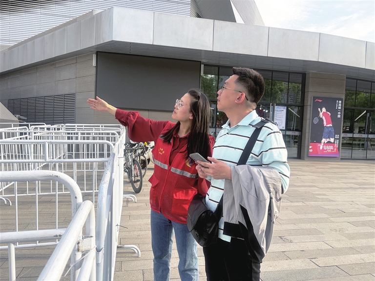 滨体社区紧挨着滨河体育中心,假期组织志愿者开展驻点服务,为游客介绍周边景点、指引线路及引导停车。