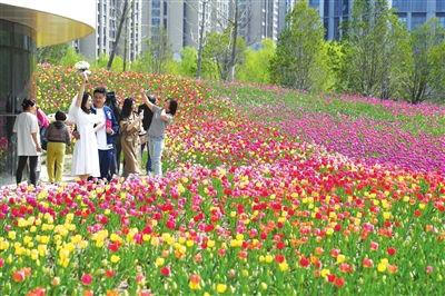 “五一”假日期间,市属公园共接待游客334.8万人次。图为5月5日,游客在晋阳湖公园游玩赏花。牛利敏 摄