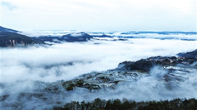 红河哈尼梯田中的水资源在森林、村寨、梯田、水系中循环往复,呈现“四素同构”的农业生态系统。