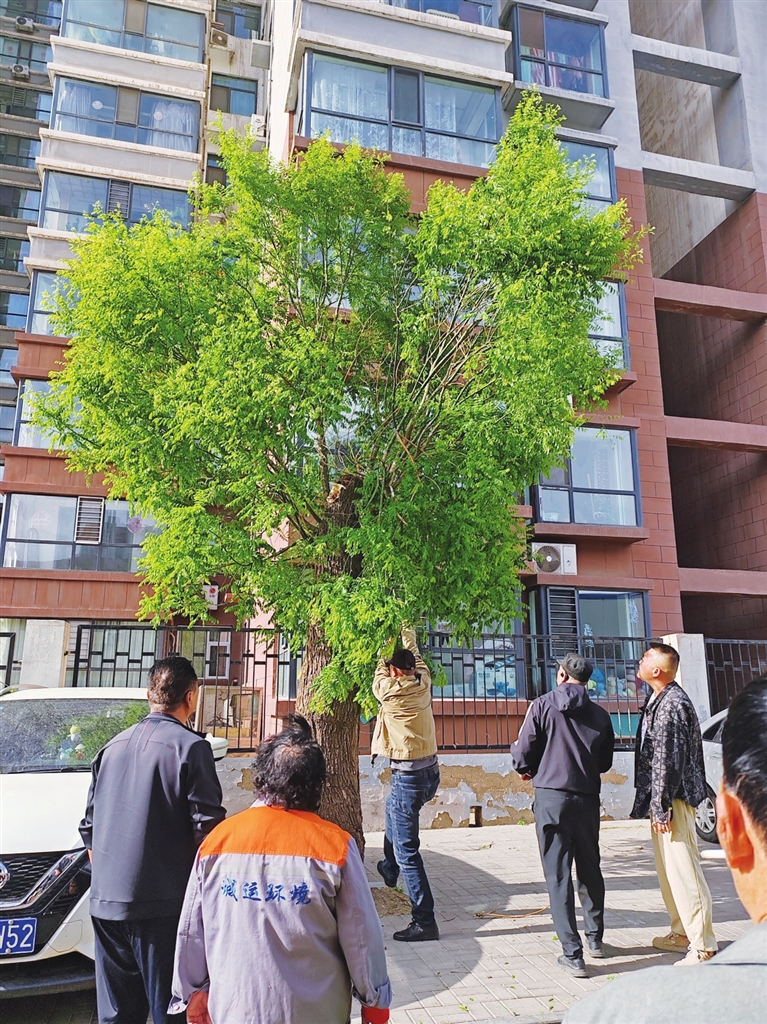 为避免类似险情再发生,社区与物业当天启动应急排查。网格员现场走访,通过居民微信群和电话通知车主挪移树下车辆,物业调派绿化队对小区的10余棵高大树木进行“体检”,重点修剪枯枝、过密枝及低垂枝干。修剪后的树木高度、冠幅得到合理控制,既保留绿化功能,又降低断枝风险。