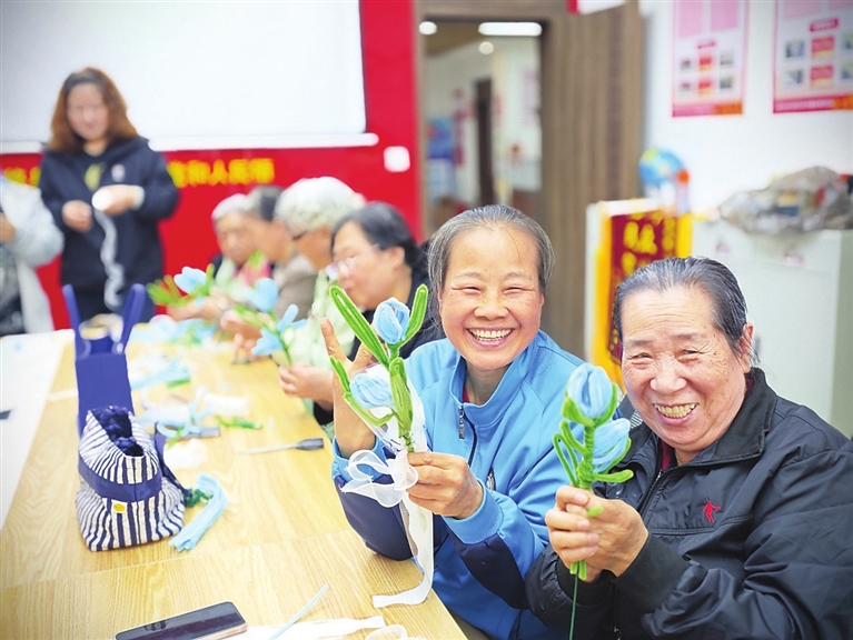 母亲节当日,杏花岭区巨轮街道胜利桥社区新时代文明实践站举办手工花朵DIY活动,通过创意与爱的传递,为“妈妈们”送上一份节日礼物。 李杰华 摄