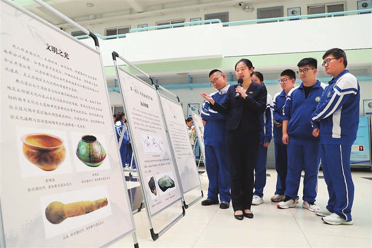此次“锦绣太原历史文化”流动展,以“名都自古并州”为主题,通过20块图文展板,分五个部分串联起太原从新旧石器时代至明清的历史脉络,以太原多处重大考古发现为出发点,将太原5000多年文明史和2500多年建城史浓缩在展板上,化身“会说话的教科书”,讲述锦绣太原城深厚的历史文化底蕴。学生们驻足围观,感受晋阳风云与并州故事。