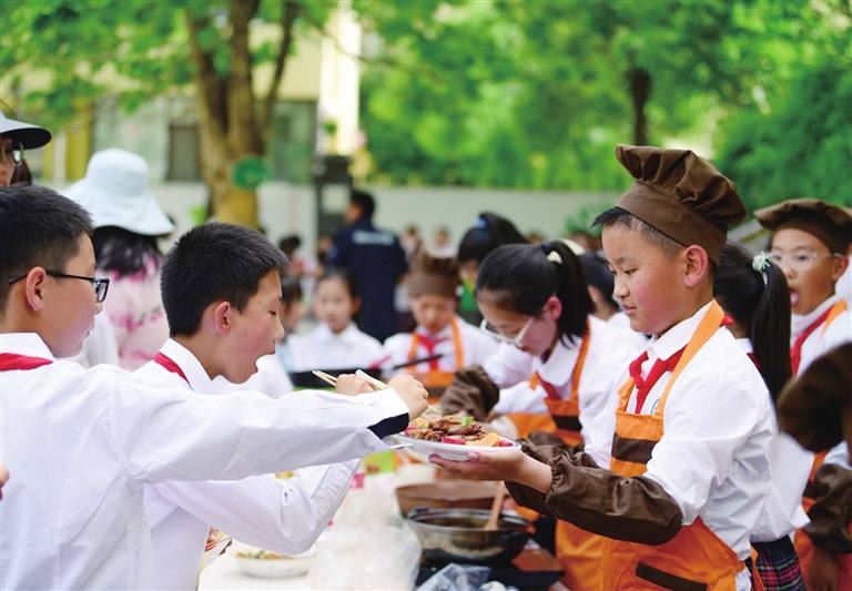 5月13日,太原市实验小学开展以“劳动润童心 实践促成长”为主题的第四届“望日葵”劳动教育活动月,包括烹饪、洗衣服、系鞋带等项目。