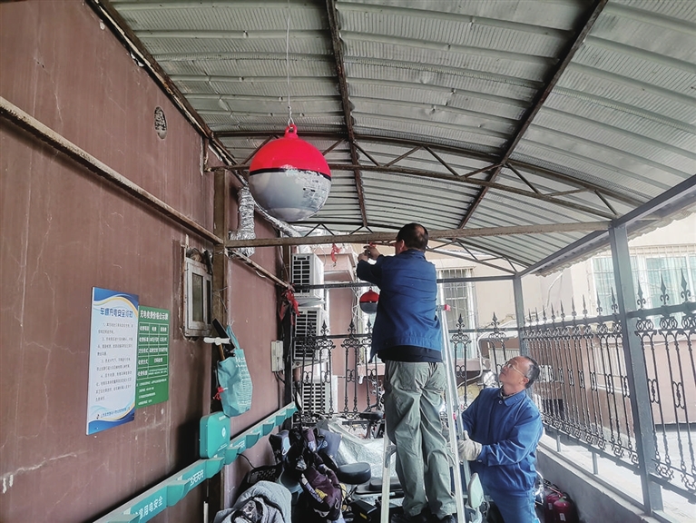 光华街59号院,随着入住率攀升,停放的车子越来越多。新城社区网格员孙洁在走访中,多次听到居民提及:如果失火,车棚没人或者不会用灭火器,岂不任由火势蔓延?社区对此很重视,当即与物业沟通,给3个车棚的顶部安装了50个灭火球。遇到明火,可自动触发灭火,无需人为操作。