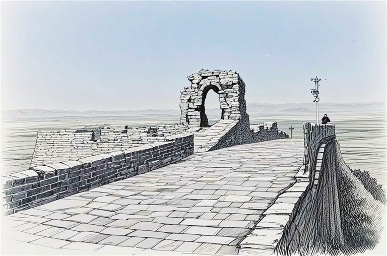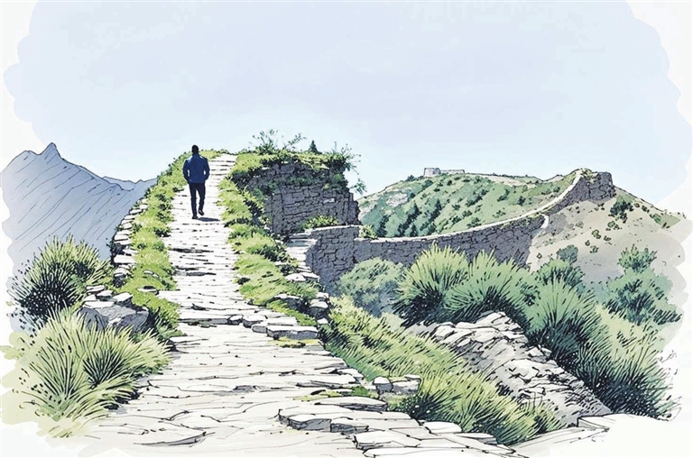 行走在长城遗址废旧的砖石墙上,身处绵延不绝的崇山峻岭,似乎依旧听得到鼙鼓雷鸣、战马嘶鸣,仍旧看得到当年战场上兵戈相击、战马驰骋的滚滚黄沙。耳边仿佛响起那首歌曲《历史的天空》:“暗淡了刀光剑影/远去了鼓角铮鸣/眼前飞扬着一个个/鲜活的面容……”