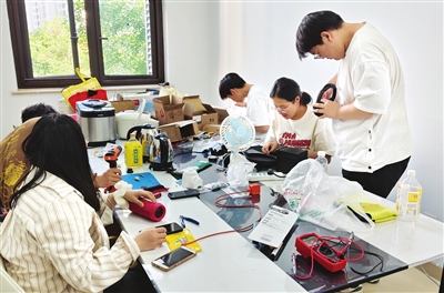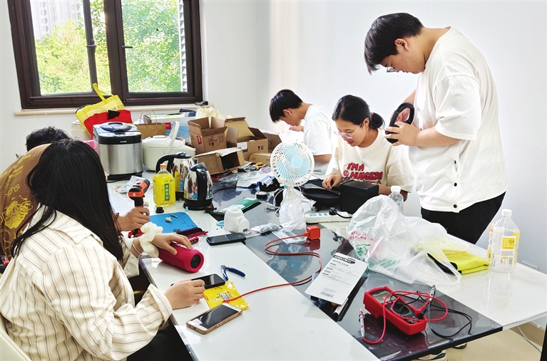 5月17日,山西晋中理工学院大学生志愿者在首开社区开展“家电义诊”,免费为居民维修各类小家电,受到居民们欢迎。 周利芳 摄