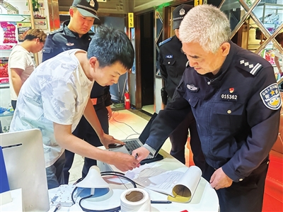 5月19日,庙前派出所民警在康隆商城、美特好超市、南海街加油站等公共场所开展治安检查,加强安全管理,提升工作人员消防安全意识及应急处突能力。辛欣 摄