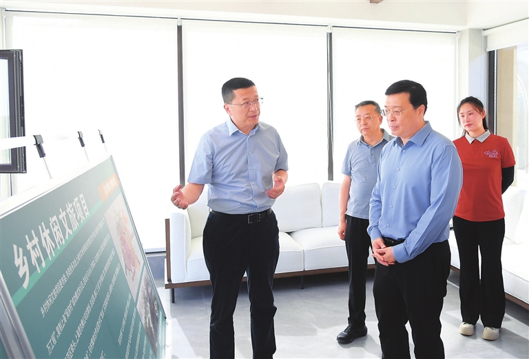 西山生态文化旅游示范区乡村振兴示范项目是我市环城游憩带的重要组成部分,覆盖尖草坪区马头水乡多个特色村庄。在珍珠峁村,韦韬听取空间规划、产业布局、策划运营等汇报,实地察看村容村貌、窑洞民宿及帐篷营地建设情况,参观特色艺术展览,要求学习运用“千万工程”经验,立足村庄地域特色和比较优势,完善配置设施,做好“民宿+”文章,创新业态模式,提升服务质量,满足市民游客高品质消费需求。位于马吉掌村的观龙阁是一处“网红打卡地”,凭栏远眺青山叠翠、绿波荡漾,汾河二库全景一览无余。韦韬来到这里,详细了解村庄旅游发展规划,希望他们充分挖掘独特的自然风光与人文资源,优化阅读、社交、观景等区域布局,加强与汾河二库景区上下联动,精心做好文旅资源保护开发文章;要求相关部门密切协同配合,以超前理念、一流标准保护开发利用,切实把西山区域打造成为具有影响力和吸引力的生态文化旅游示范区。