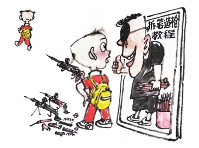 某短视频平台展示,用中性笔组装狙击步枪,90%超高仿真度,可发射。然而,“笔枪”若使用不当,则存在一定的危险性。(《法治日报》5月21日)