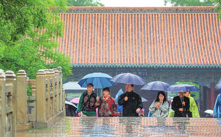5月22日,雨中的晋祠景区,游人漫步其中,别有一番情趣。王韵菲 摄
