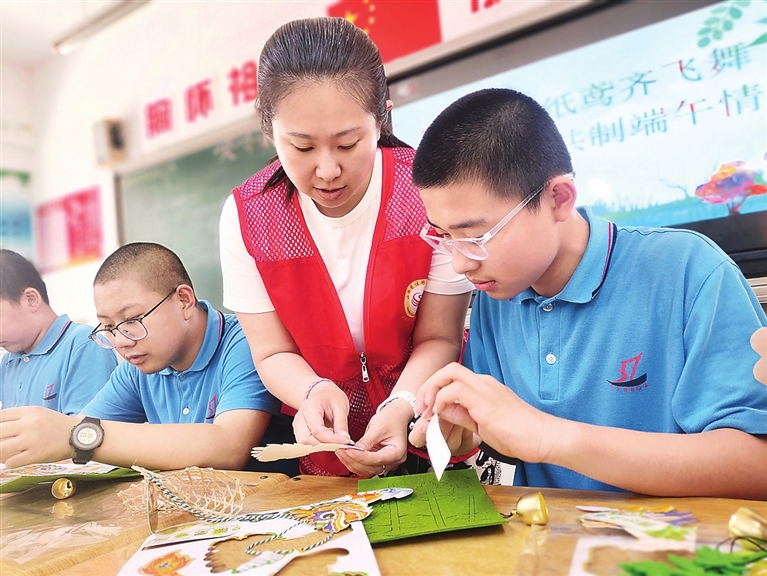 为让青少年深入了解端午文化,宁化府社区联合南海中学开展龙舟挂饰制作活动。社区志愿者通过趣味问答和故事讲解,向学生们介绍端午节的起源与习俗。