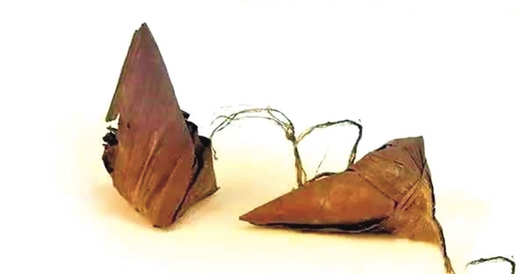 不管是包制手法还是整体样貌,这两个粽子看上去和我们现在常吃的粽子一模一样,是目前发现较早的实物三角粽子,并且保存相当完好。它们就像一把钥匙,为研究两宋时期的饮食提供了难能可贵的实物资料。