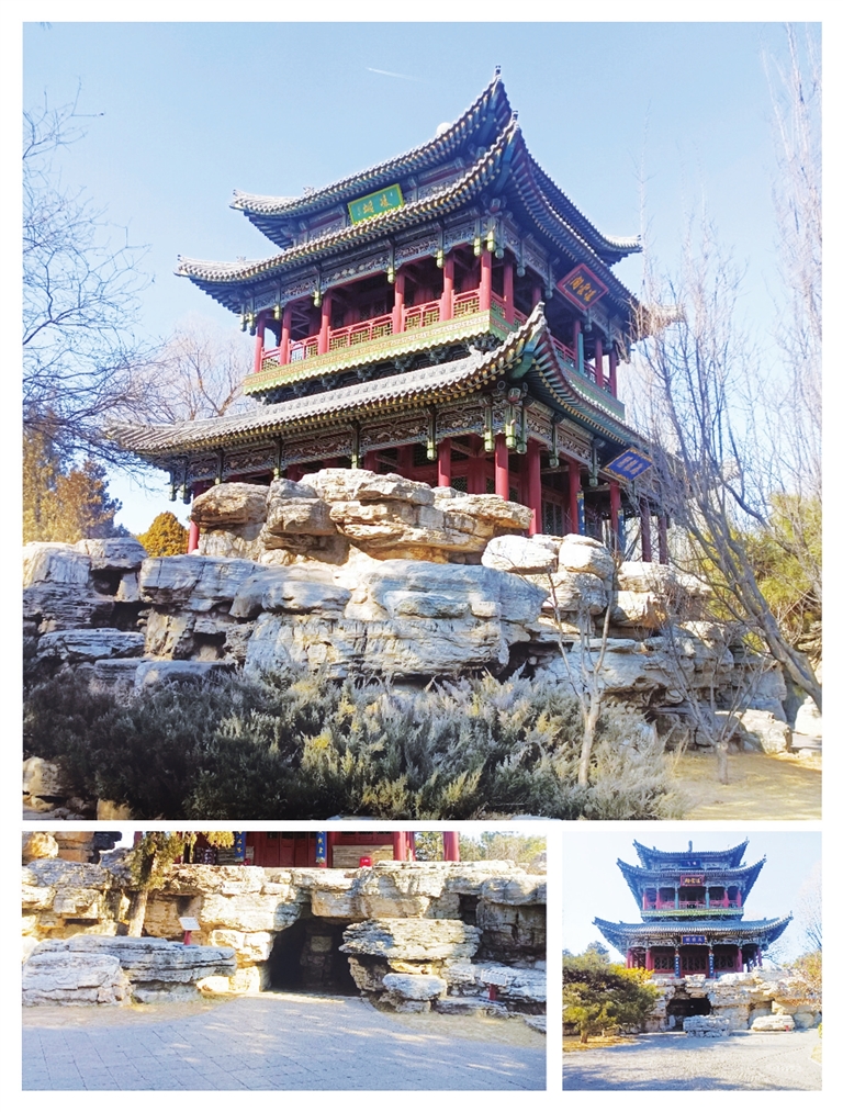 在唐园的建筑布局中,飞龙阁堪称点睛之笔。其前方,22根立柱撑起气势恢宏的园门与雕刻精美的神仙照壁;后方,32根立柱托起典雅的长守厅,厅前矗立着栩栩如生的龙兴晋阳雕塑。园门与长守厅兼具通行与休憩功能,而神仙照壁和龙兴晋阳雕塑,恰似飞龙阁的前后屏障,烘托出楼阁的威严气势。再看飞龙阁南北两侧,北面莲花池碧波荡漾,南面饮马泉清水潺潺,共同构成“前壁后厅,南泉北池”的园艺景观。台基假山内的石洞东西贯通,西面出口左侧立有一座小巧玲珑的牌坊,上书“通幽”二字,乃清代学者祁寯藻的集字之作。