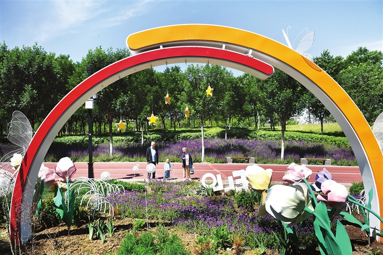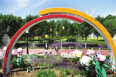 6月3日,游客在双塔公园内观赏花境。入夏以来,双塔公园精心打造的“花有约·悦生活”“花野寻梦”“低碳共生” 等花境进入最佳观赏期。