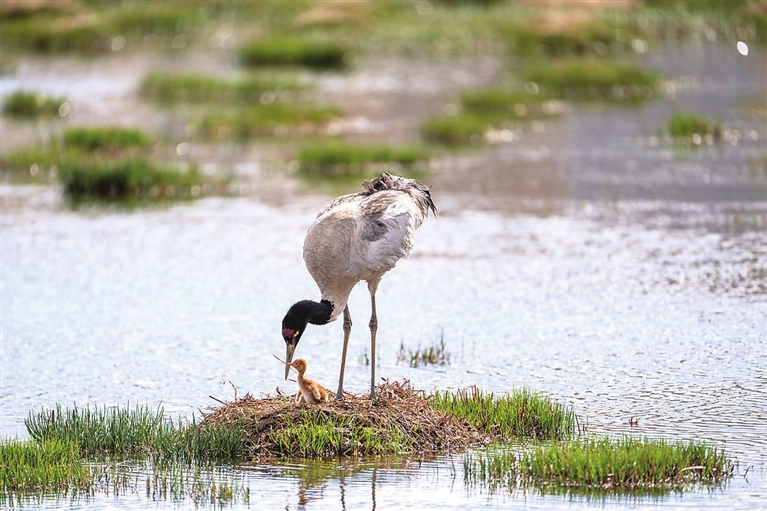 黑颈鹤是国家一级重点保护野生动物,属高原特有鹤类,主要栖息于海拔2500米至5000米的高原沼泽地、湖泊及河滩等湿地环境。
