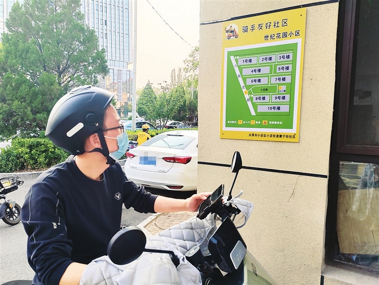康宁街社区辖区面积2.8平方公里,常住居民超万人。为解决外卖骑手“进门难、找楼难、停车难”问题,半个月前,社区携手物业,摸排小区出入口、楼号、单元号、各类标识、公共设施等信息,绘制出“骑手友好社区”路线图。目前,“骑手友好社区”路线图已实现辖区5个居民小区全覆盖。“以前进小区像走迷宫,现在看着地图就能快速找到楼栋,省去了问路时间。”刚负责该小区的美团骑手陈亮对路线图带来的便捷赞不绝口。