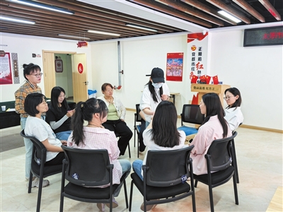 在长风社区解忧室,国家二级心理咨询师陈超进行引导,家长们轮流自我介绍、互相肯定,现场气氛活跃。接下来,陈老师帮助家长梳理亲子关系,鼓励家长多花时间陪伴孩子,用积极心态感染孩子,在团结协作中与孩子共同完成目标。