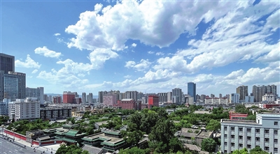 6月9日,蓝天白云抬头可见,形成一幅“太原蓝”美丽生态画卷。 张澍宏 摄