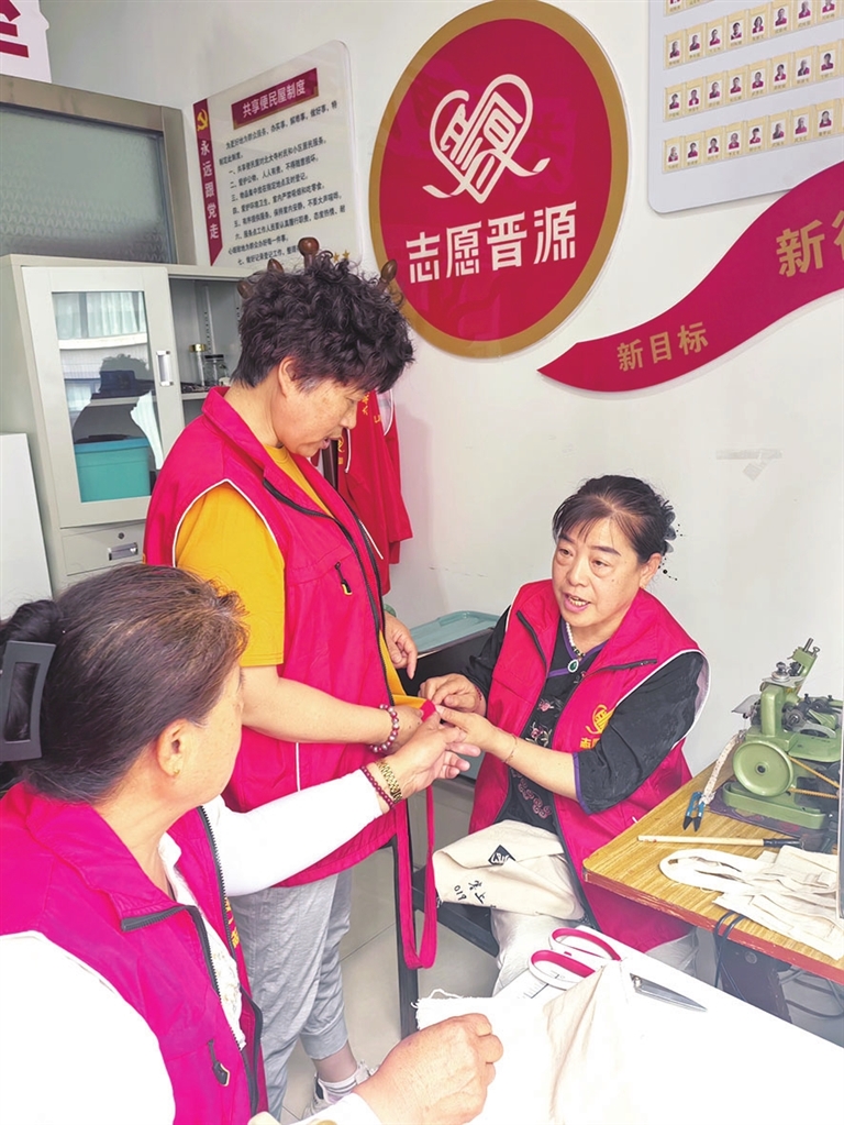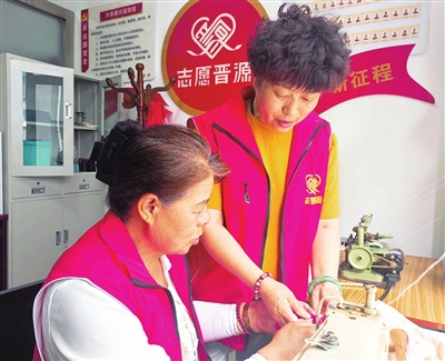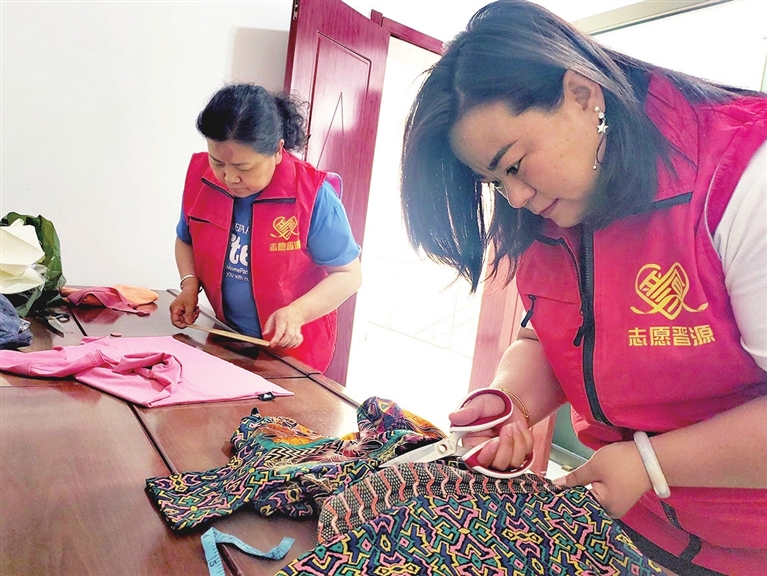 “王大姐,这件衣服你给改改,穿着有点长。”6月9日下午,一位村民拿着一件旧短袖让志愿服务队员王桂兰进行修改,类似场景每周一都会上演。