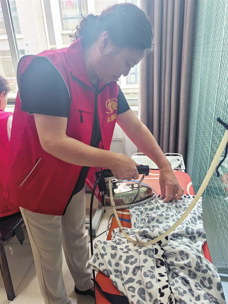 赵蕊花起初是志愿服务的受益者,看到一件件需要修改的衣物在“巧媳妇”们手中焕发新生,便萌生了加入的想法,从“零基础”学起,穿针引线、裁剪布料、修改裤边、锁边熨烫……在老志愿者的“传帮带”下,如今也能独当一面,奉献一份爱心。