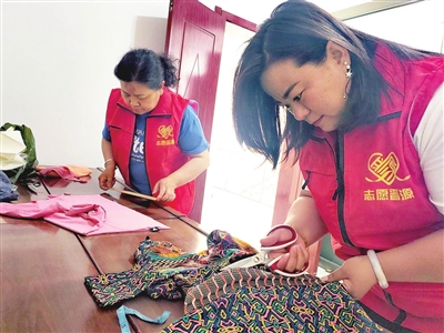 铺好一条旧裙子,比量好长短,拿起剪刀,将其从中间部分裁剪下来,38岁的志愿服务队员李晶接到一个有挑战的活。一位村民拿来一条款式过时的长裙,希望通过她的巧手“化腐朽为神奇”。李晶一琢磨,干脆裁掉多余部分,改成半身裙,风格改变的同时,赋予了旧裙子新活力。“这么一改,别说还挺好看,又能多穿两三年。”那位村民拿着改好的裙子满意而去。