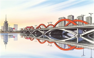 小时候,漪汾桥在我眼中,是汾河上一道绝美的彩虹。红彤彤的拱洞像糖葫芦串起童年,每次路过,我都会认真数。数着数着,思绪就飘到了少年宫的美术班,想起在那里涂抹色彩、勾勒梦想的时光;数着数着,又仿佛置身于太原市图书馆的自习室,沉浸在知识的海洋里;数着数着,还会想到汾河景区,在那里追逐嬉戏,感受四季更迭。那是独属于年少时光的美好。2008年它拓宽改造,临时土桥晴天尘土飞扬、雨天泥泞难行,但看着新桥桥墩渐稳、桥身舒展,满心都是对它崭新未来的期待。