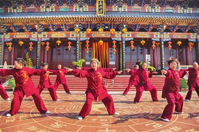 越来越多的非遗代表性项目走进市民生活。省级非物质文化遗产代表性项目傅山拳法具有强身健体的作用,日益受到青睐。图为6月12日早晨,市民在尖草坪区中华傅山园练习傅山拳法。